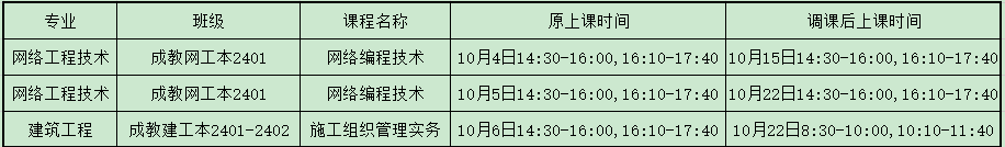 关于2024级本科《网络编程技术》和《施工组织管理实务》课程国庆期间的调课通知