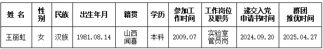 经继教学院工会推优、党员大会投票推荐,继续教育学院支部委员会拟将王丽虹同志列为入党积极分子人选。根据发展党员工作有关要求,现将其有关情况公示如下: